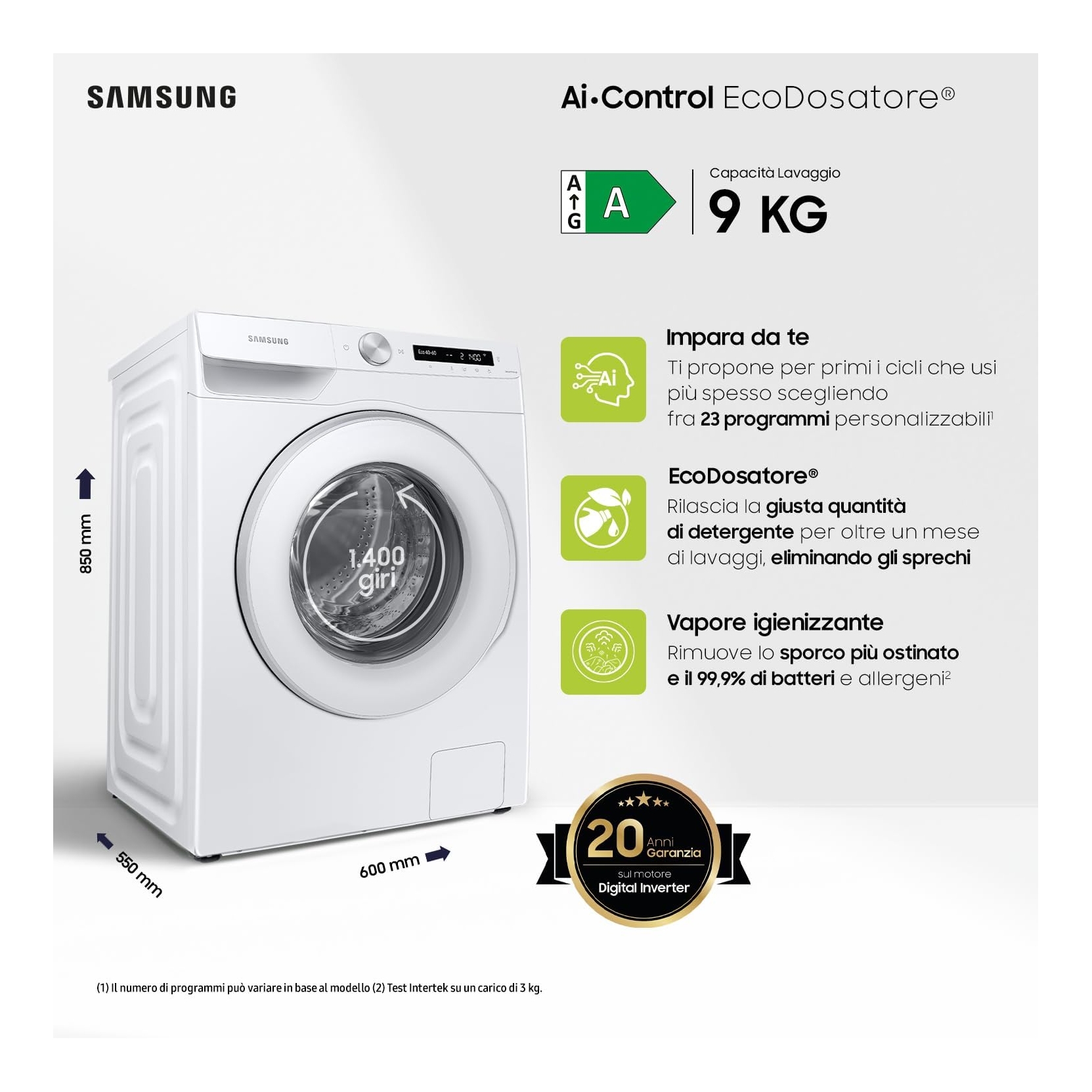 Recensisci per primo “Samsung Lavatrice 9 Kg 1400 Giri Ecodosatore Vapore Wi-Fi Classe A”